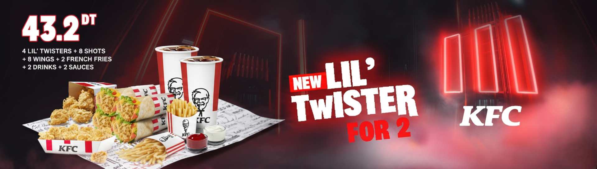 22,90 TNDTwister sandwich au choix, 1 moyenne frite, 1 pièce de poulet , canette au choix