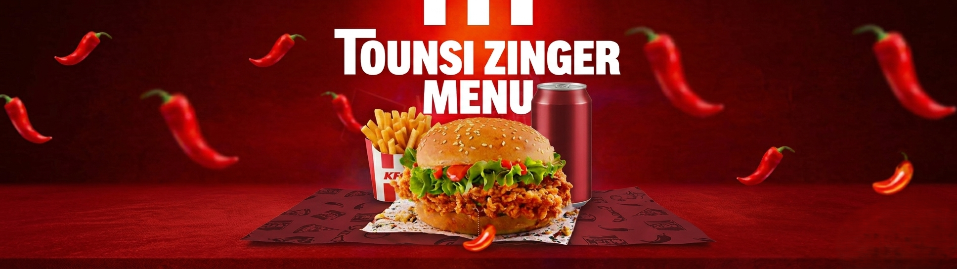 26,90 TNDMighty zinger sandwich, 1 moyenne frite, 1 pièce de poulet , canette au choix